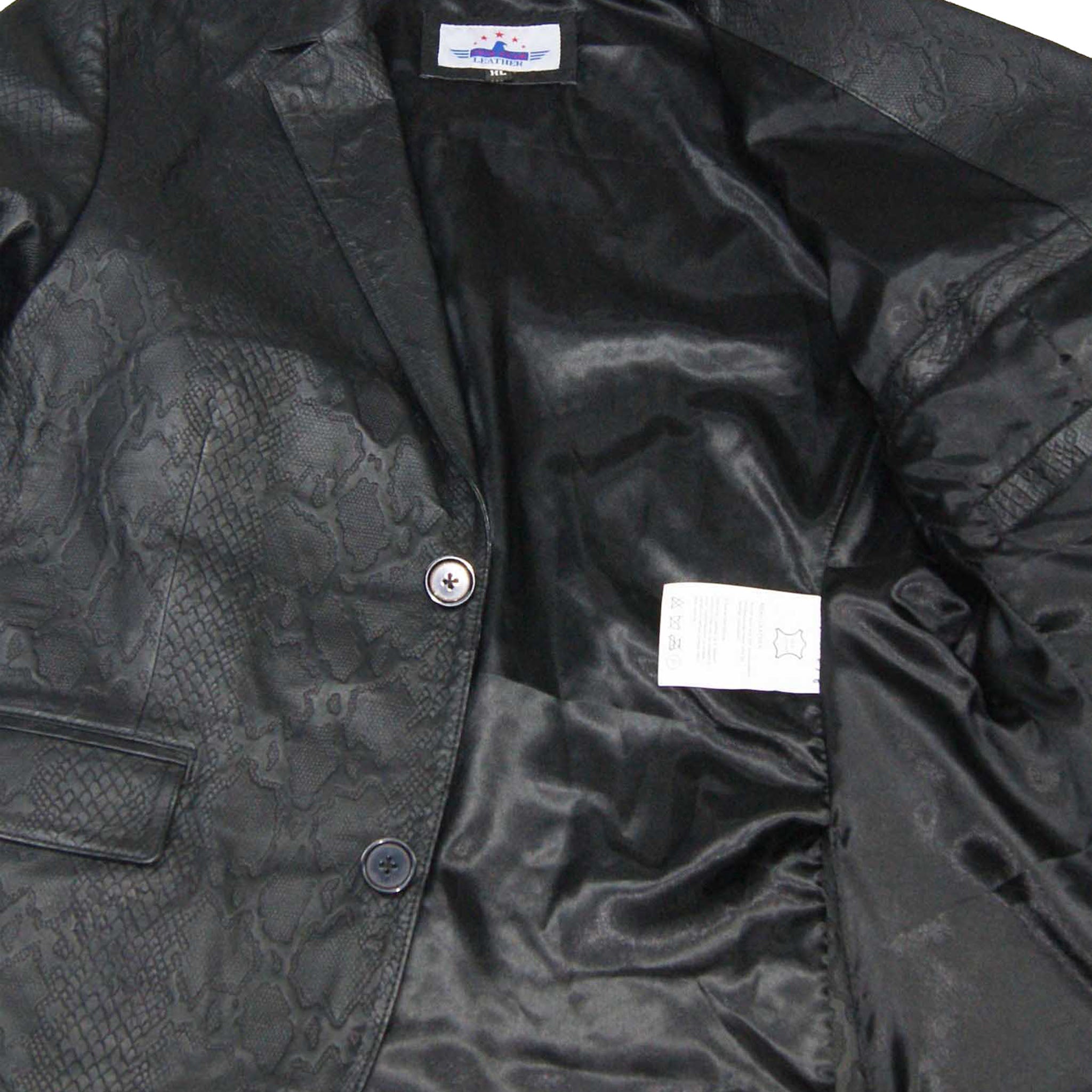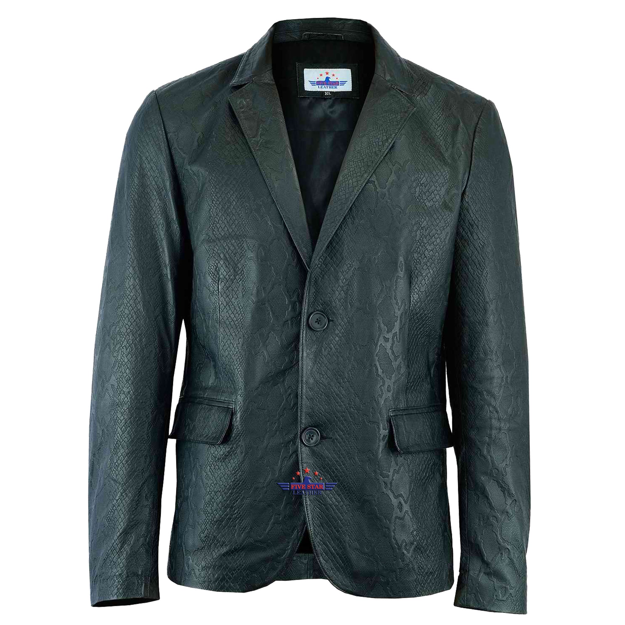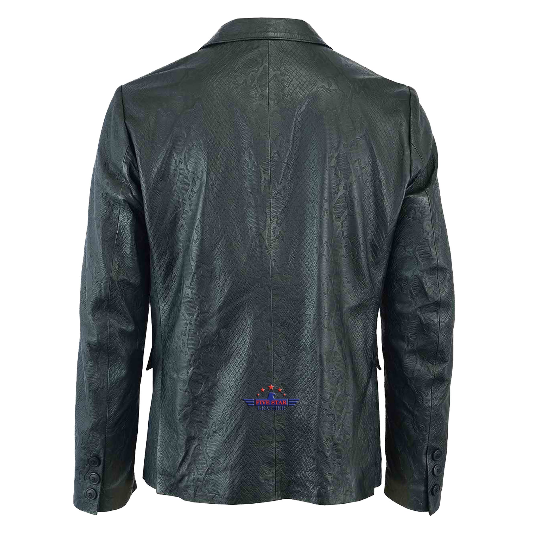 Men Real Leather Black Python Snake Textured Blazer Jacket Two Button Fashion Coat