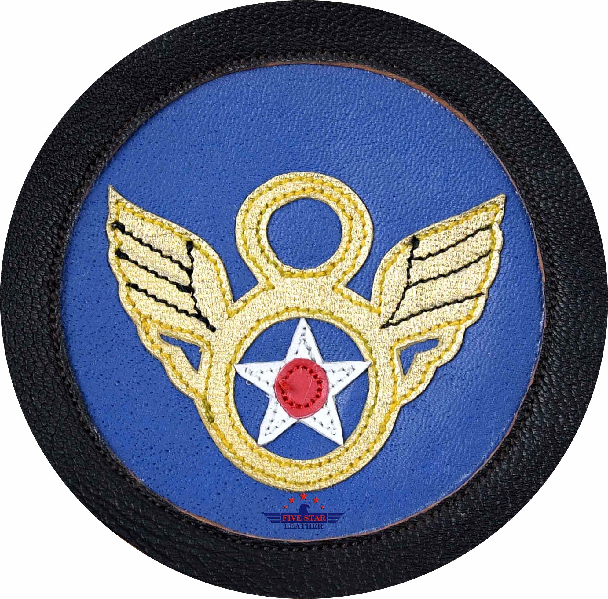 Handcrafted leather patch featuring a rounded design for the shoulder, inspired by the AAF WWll emblem.