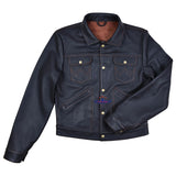 Men Trucker Black Goatskin Classic Western Denim Style with Action Back