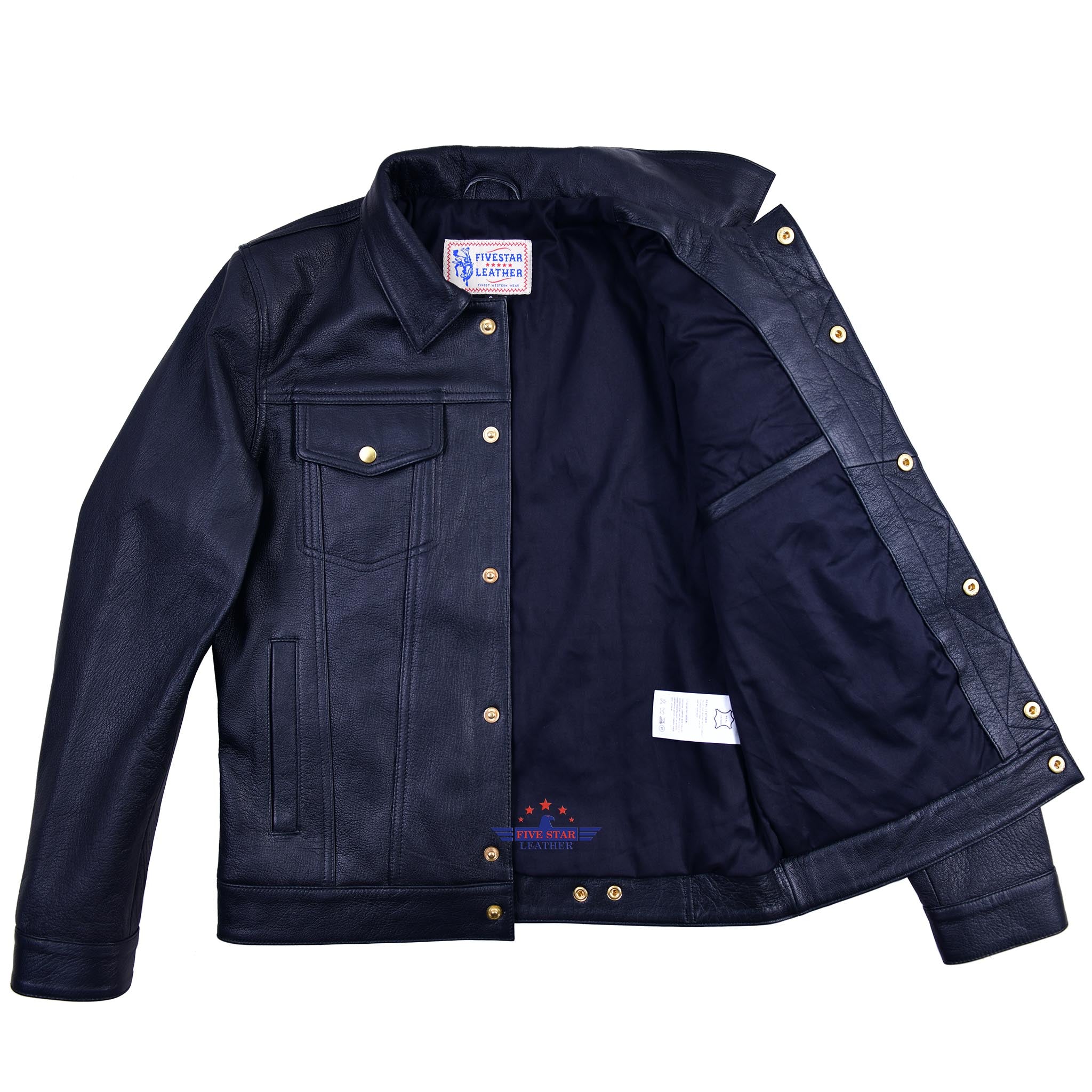 Men Trucker Real Black Goatskin Classic Western Denim Style Leather Black Jacket