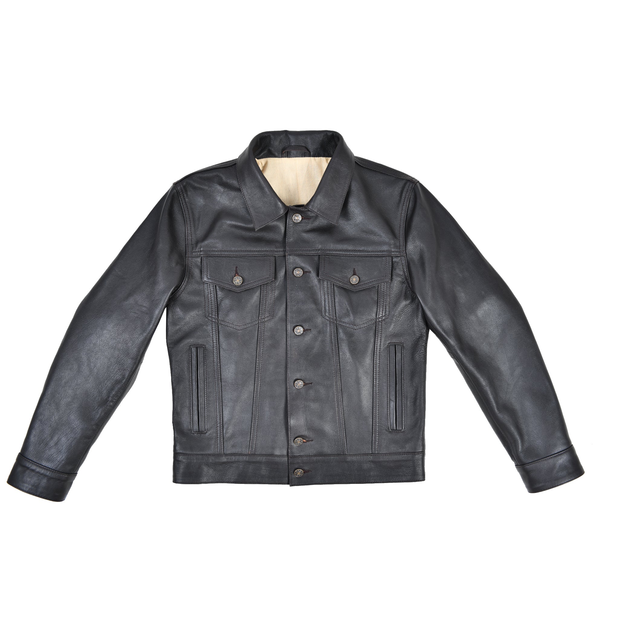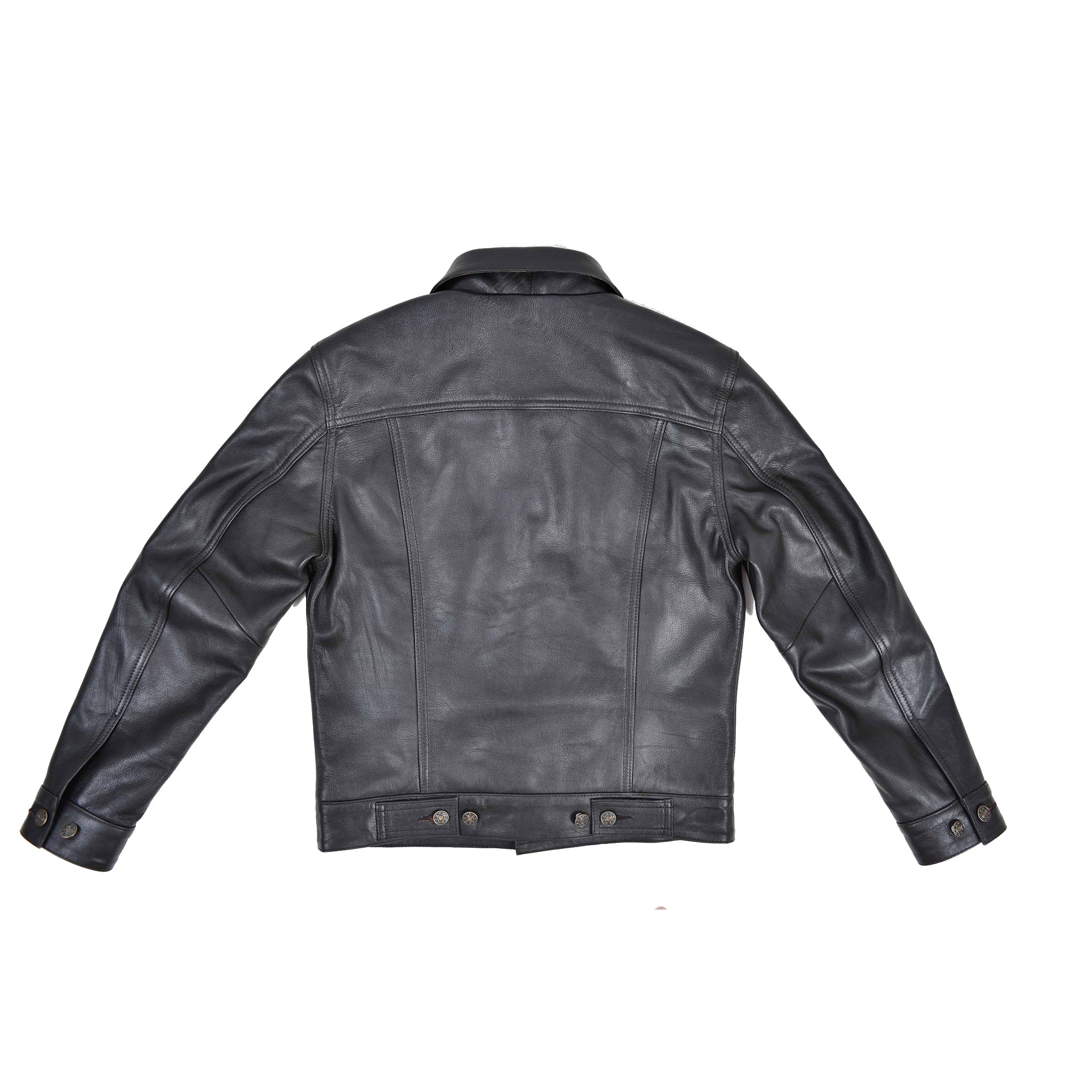 Men Trucker Real Goatskin Classic Western Denim Style Leather Jacket