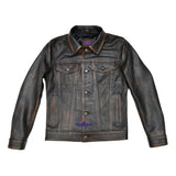 Men TRUCKER Suede Classic Retro Western Denim Style Real Cow Hide Leather Jacket