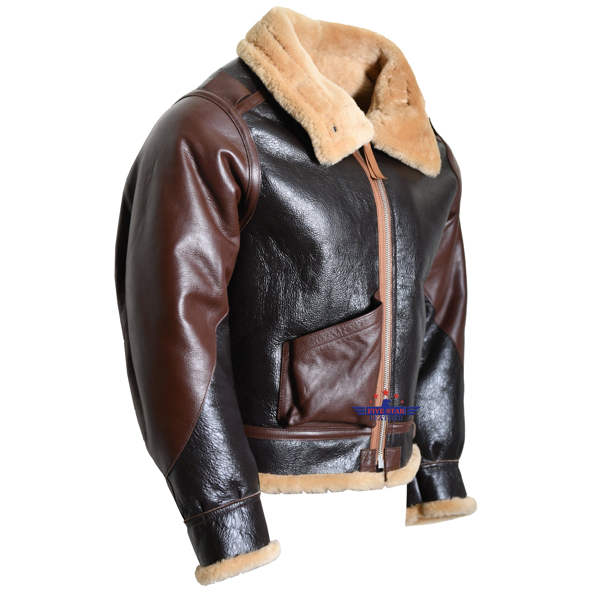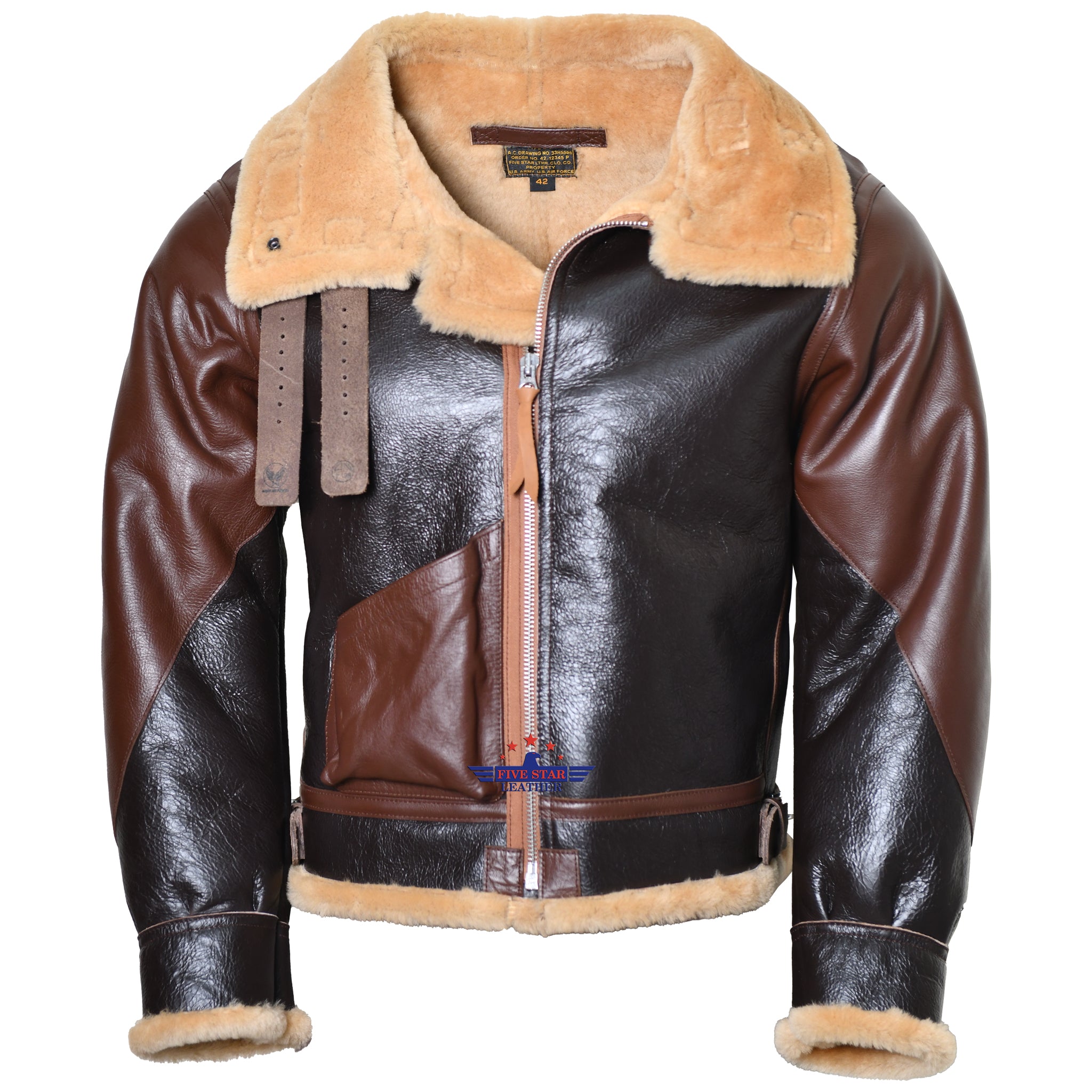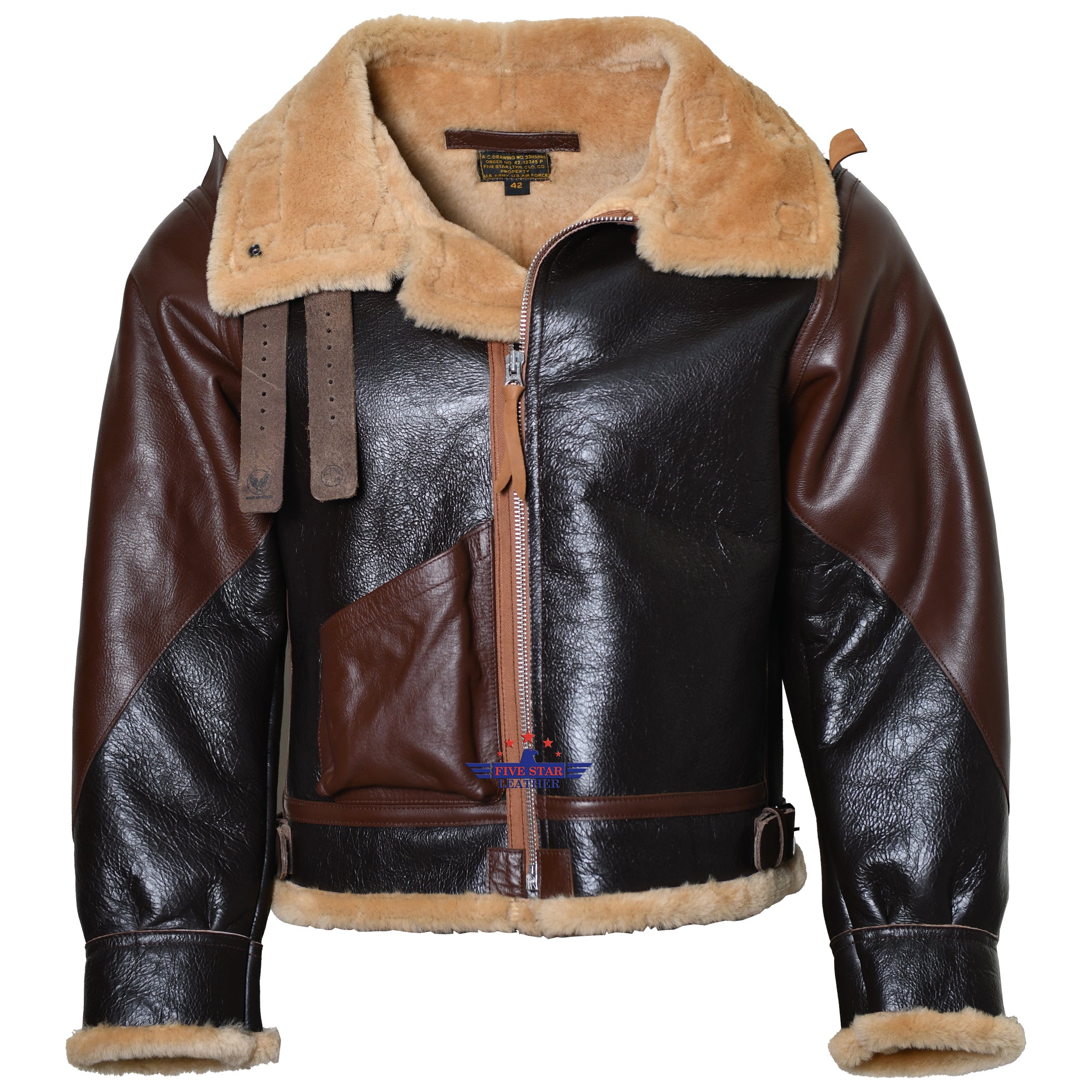 FiveStar Leather Repro USAAF Type B-3 Bomber Aviator Pilot Seal Brown Sheepskin 10mm Flight Jacket