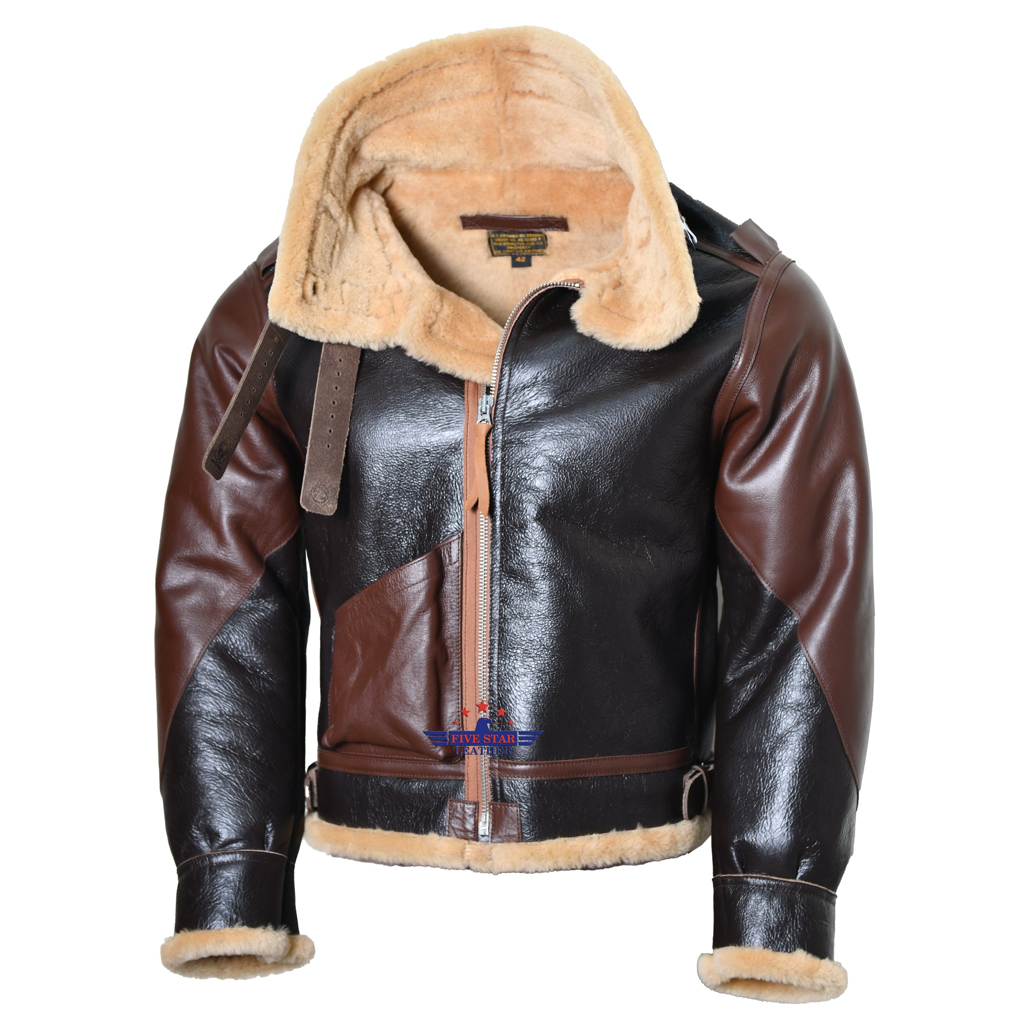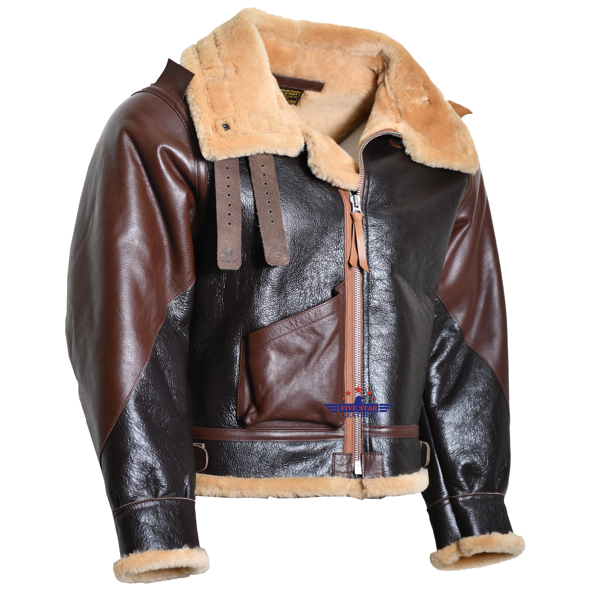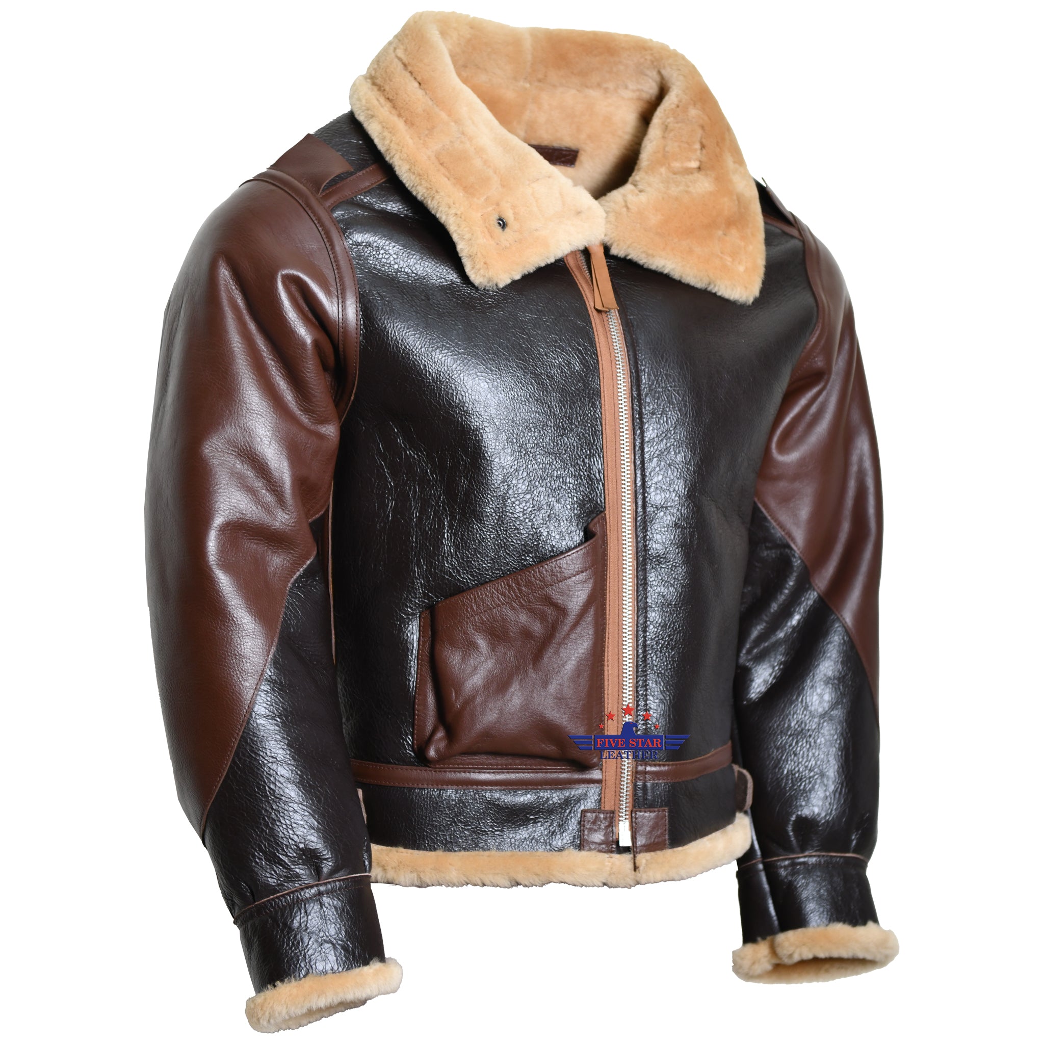 FiveStar Leather Repro USAAF Type B-3 Bomber Aviator Pilot Seal Brown Sheepskin 10mm Flight Jacket